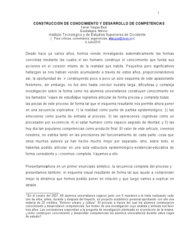 El aprendizaje y el desarrollo de las competencias xavier vargas beal guadalajara mexico instituto tecnologico y de estudios superiores de occidente para criticas comentarios sugerencias etc xvargasatitesomx 23 mayo 2005. De xavier vargas beal texto academico con elementos importantes de orientacion para la investigacion social. Unaguia practica para saber que es la investigacion en general y como hacerla con enfasis en las etapas de la investigacion cualitativa apropiada para quien hace investigacion porprimeravez. Metodologia de la investigacion.